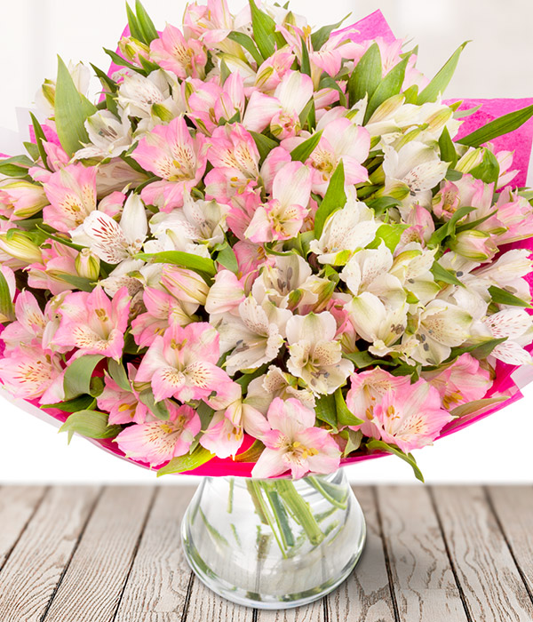 Our Waltz bouquet contains a mix of beautiful pink and white alstroemeria which will open up and last for up to 3 weeks! Sent in a special Eflorist box designed to protect the stems and provide a pleasant unboxing experience. The flowers arrive in bud, and with just a splash of water and our included flower food, the blooms will gradually open up within two days. And with tracked delivery, you can track the progress of your special bouquet, knowing exactly when the surprise reaches your loved one. Show someone you care with this affordable bouquet.